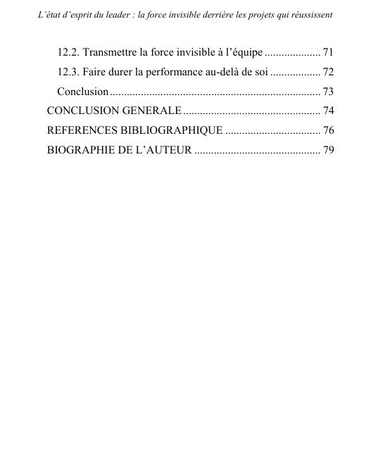 À travers des chapitres qui mêlent réflexion, stratégies et outils pratiques, ce guide invite le leader à devenir un architecte culturel, capable de transmettre sa force invisible et de créer un environnement où la performance, la cohésion et l’engagement deviennent naturels. La philosophie centrale du livre est limpide : tu n’as pas besoin d’être le plus technique, mais le plus aligné. En cultivant cette posture, le leader transforme non seulement lui-même, mais aussi ses projets et ses équipes, faisant de l’invisible le moteur essentiel de la réussite durable.