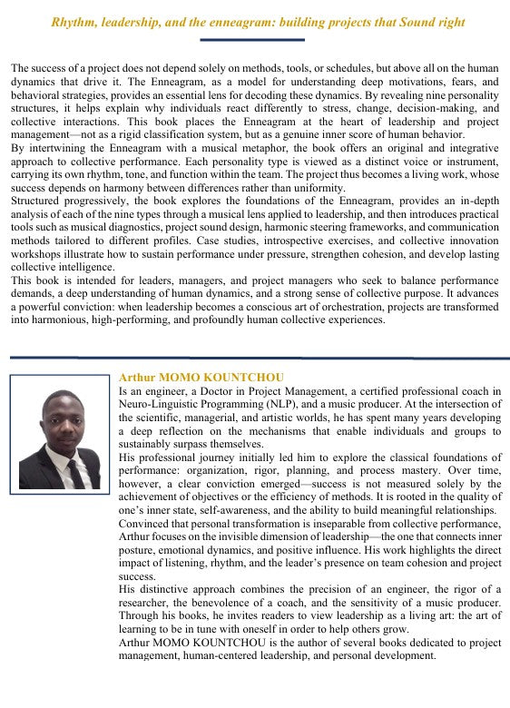 This book is intended for leaders, managers, and project managers who seek to balance performance demands, a deep understanding of human dynamics, and a strong sense of collective purpose. It advances a powerful conviction: when leadership becomes a conscious art of orchestration, projects are transformed into harmonious, high-performing, and profoundly human collective experiences.