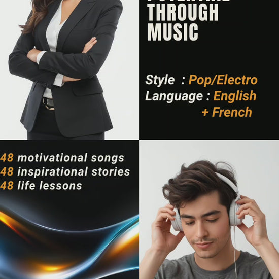 This exclusif program brings together 48 powerful Pop/Electro tracks (24 in English and 24 in french), each paired with 24 inspiring life stories (in English and french) and 24 practical lessons (in English and french) you can start applying today.